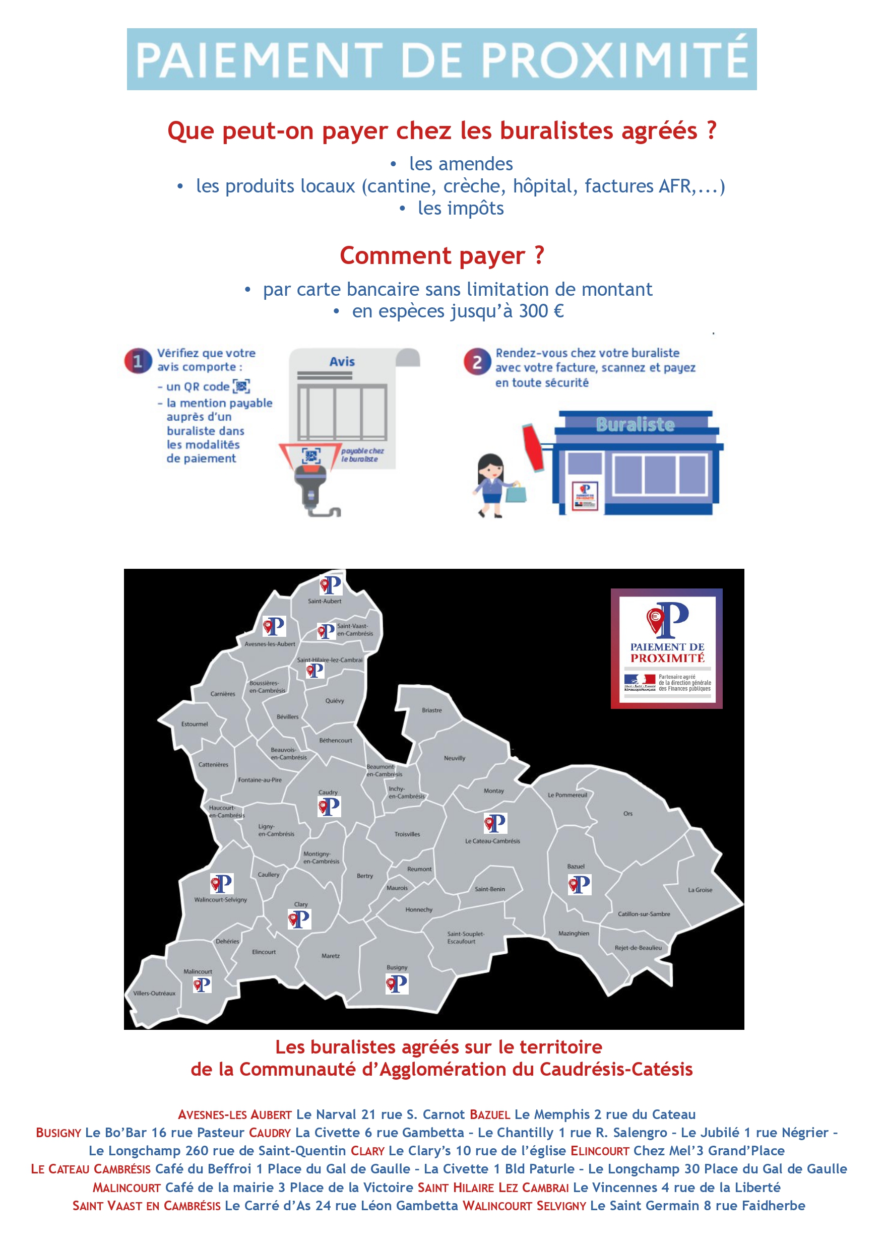 📝 Nouveauté : 💰 Vous pouvez désormais régler votre facture du Trésor Public chez les buralistes agréés sur le territoire de la Communauté d’Agglomération du Caudrésis-Catésis
