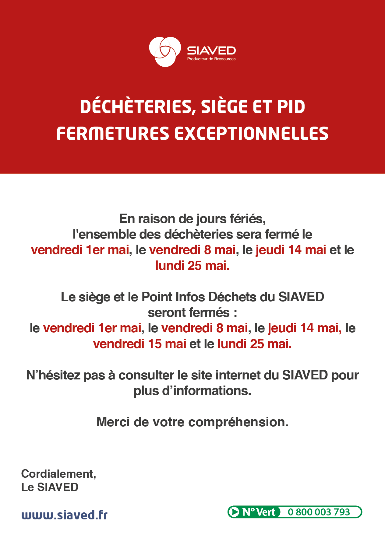 👉 Retrouvez tous les nouveaux horaires sur le site du SIAVED en cliquant sur le lien ci-dessous :